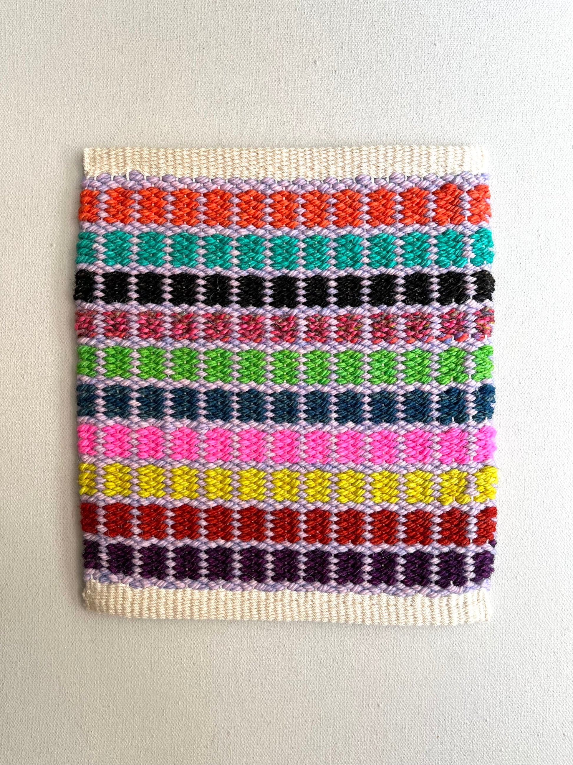Handwoven and hand-dyed Krokbragd trivet made be me on my floor loom.